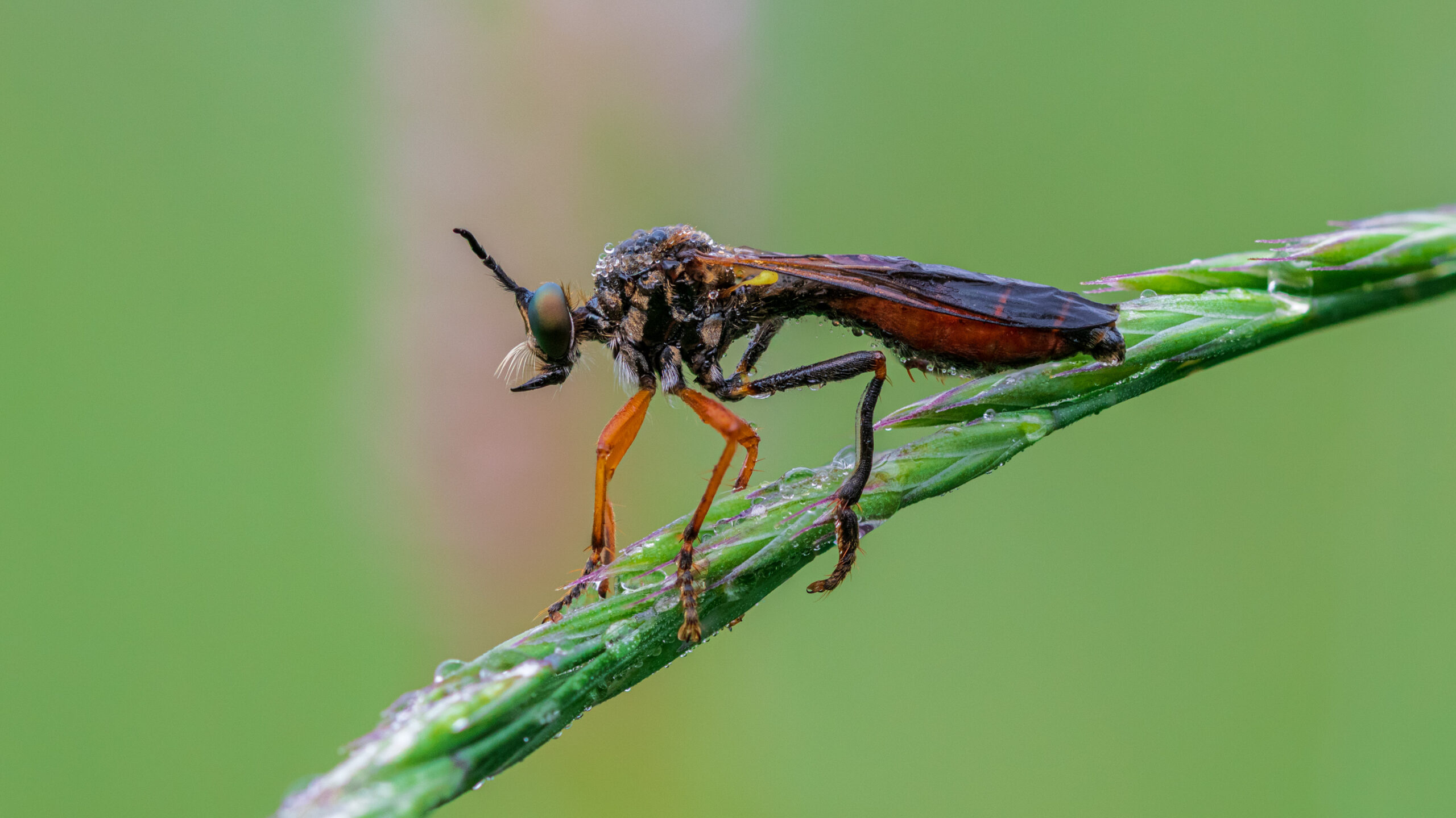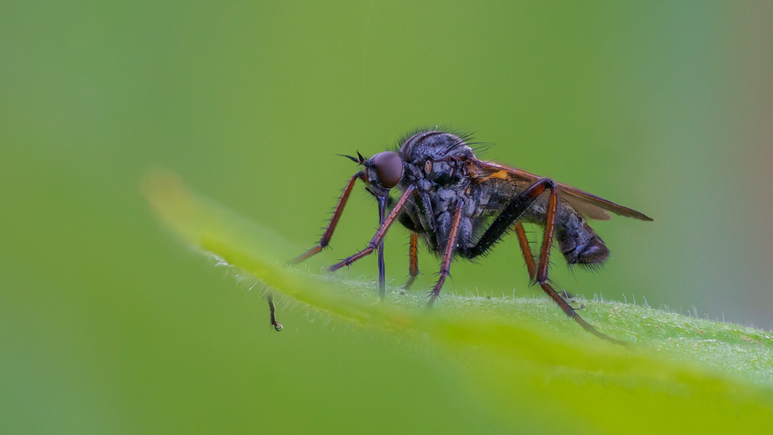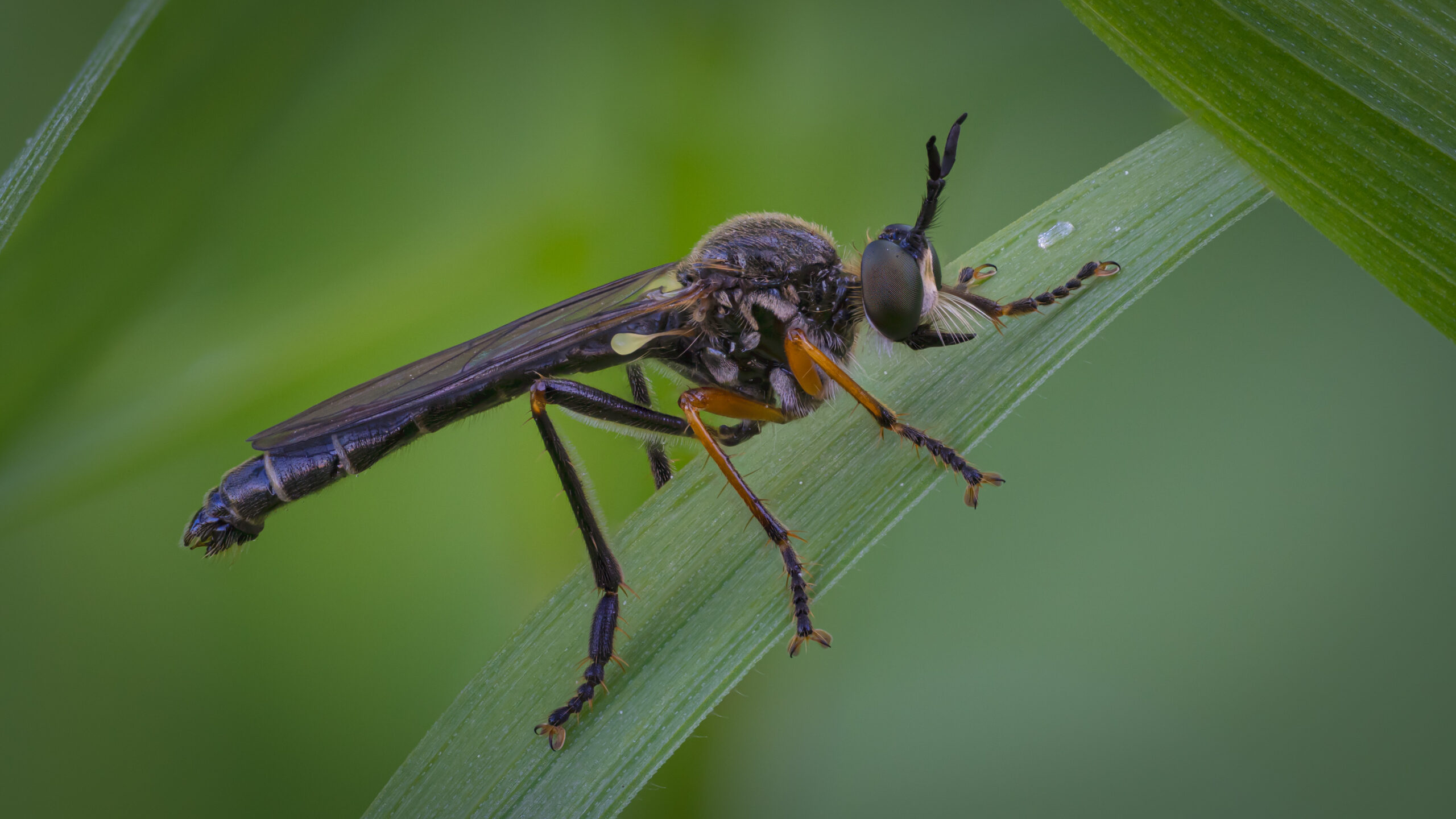 „Raubfliegen sind für mich die kleinen ‚Greifvögel‘ der Insektenwelt: schnell, präzise – und mit einem Blick, der erstaunlich ernst wirkt. Im Makro sieht man erst, wie viel Struktur da drinsteckt: Facettenaugen, Borsten, Flügeladern und dieser kompakte Körperbau, der wie gemacht ist fürs Jagen. Manche Arten erinnern mich dabei sogar an Steampunk – wie kleine Maschinenwesen, wenn das Licht über die „Panzerplatten“ und metallisch wirkenden Oberflächen läuft. Das Spannende ist, dass sie oft erstaunlich gut stillhalten … bis sie es plötzlich nicht mehr tun. Diese Serie zeigt meine liebsten Begegnungen – von ruhigen Ansitzmomenten bis zu Szenen, in denen der Name Programm ist.“